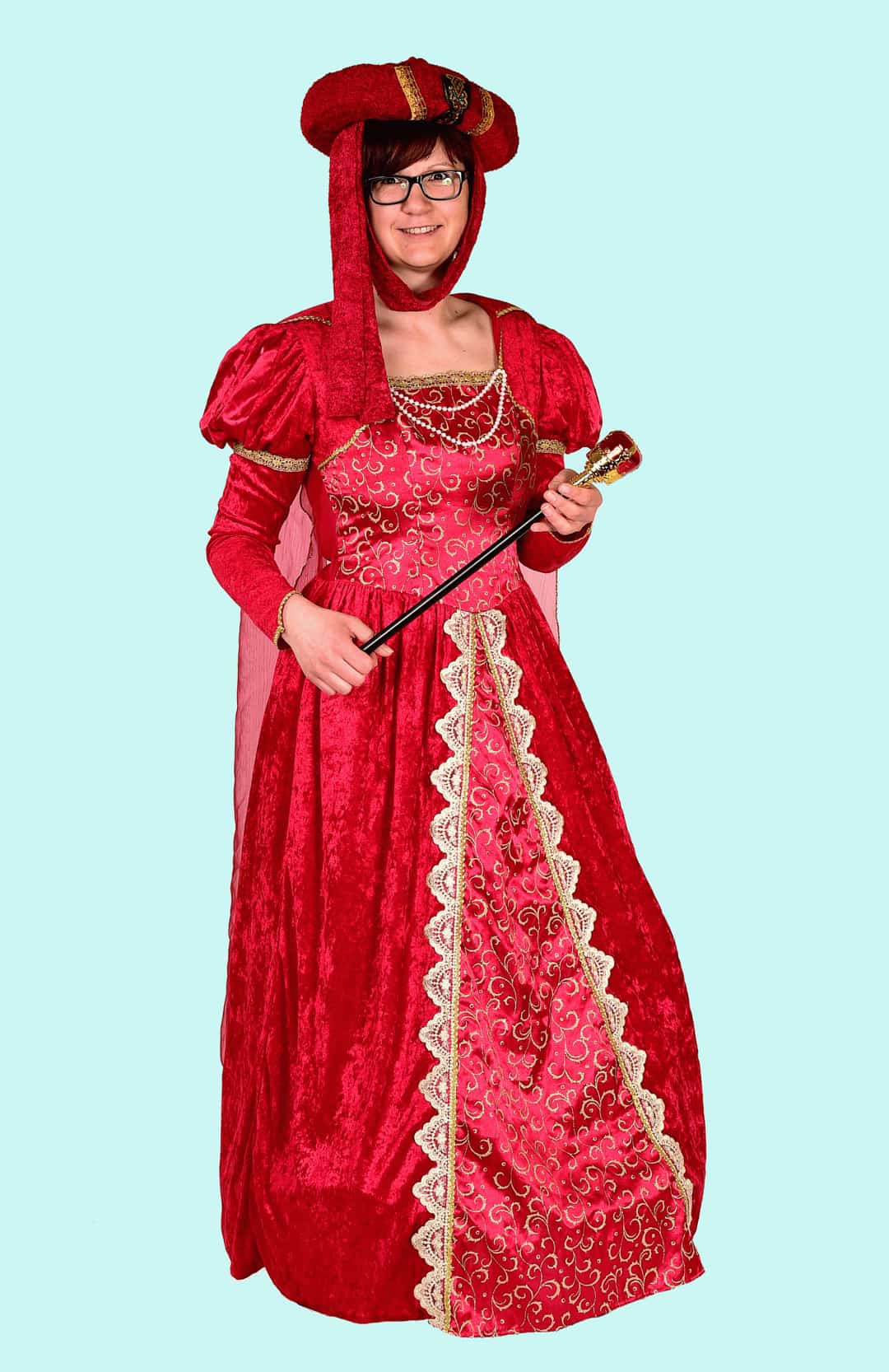 Kostüm Burgfräulein rote Edelmaid Mittelalter Gr. 40 für Erwachsene inkl. Zubehör. 41,- € für vier Tage. Kostümverleih Chemnitz – Kostüm M-58