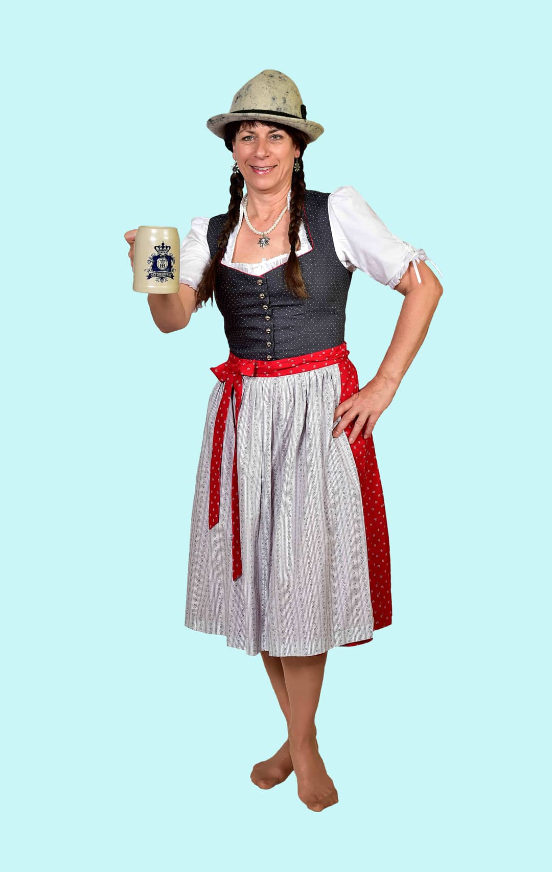 Kostüm Dirndl Gr. 42 für Erwachsene. 38,- € für vier Tage. Zubehör inklusive. Chemnitzer Kostümverleih. W-226