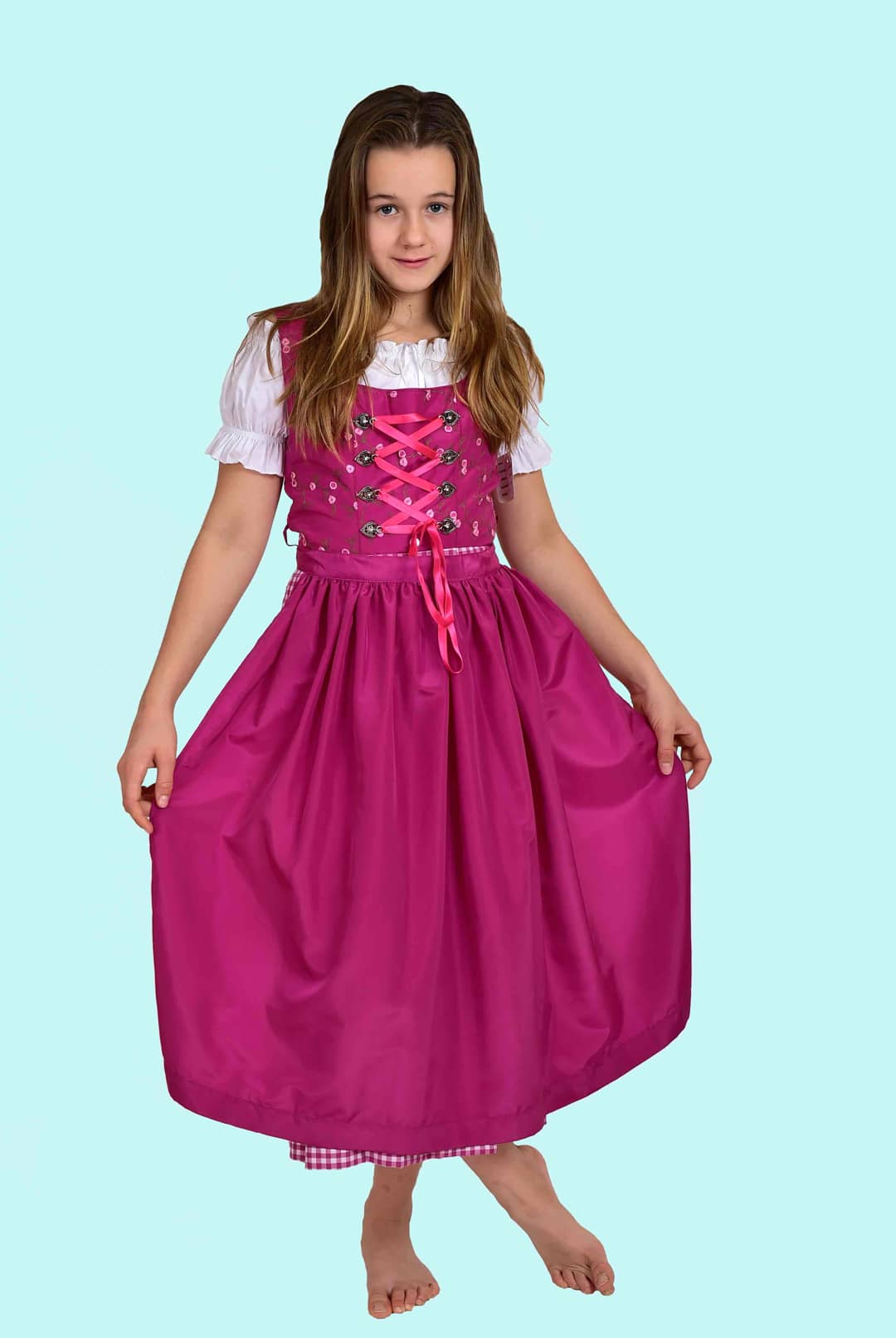 Kostüm Dirndl rotes Mädchen Gr. 146. 26,- € für vier Tage. Zubehör inklusive. Chemnitzer Kostümverleih. W-227