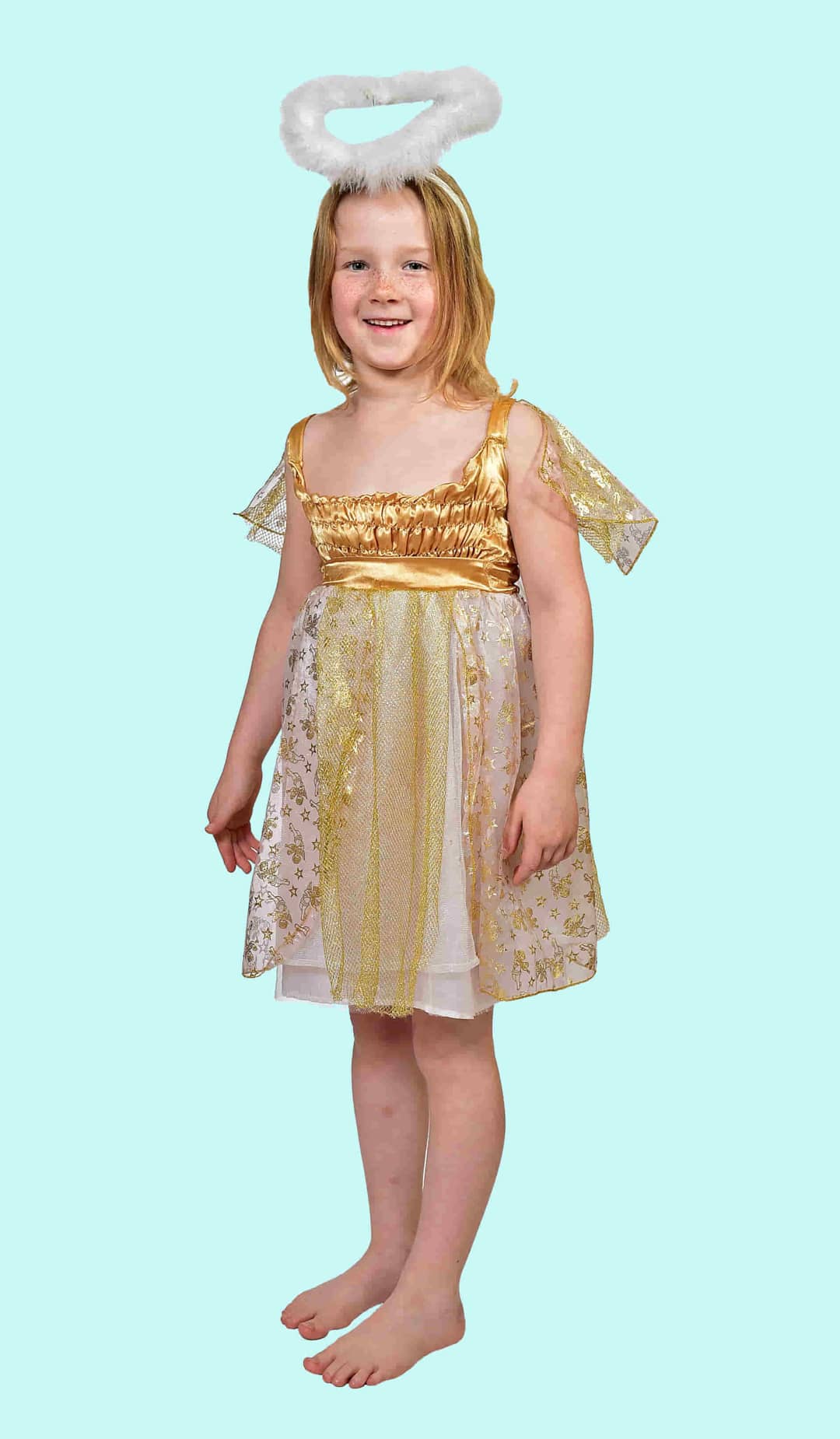 Kostüm goldener Engel Gr. 128 für Kinder. 15,- € für vier Tage.Zubehör inklusive. Chemnitzer Kostümverleih. W-88