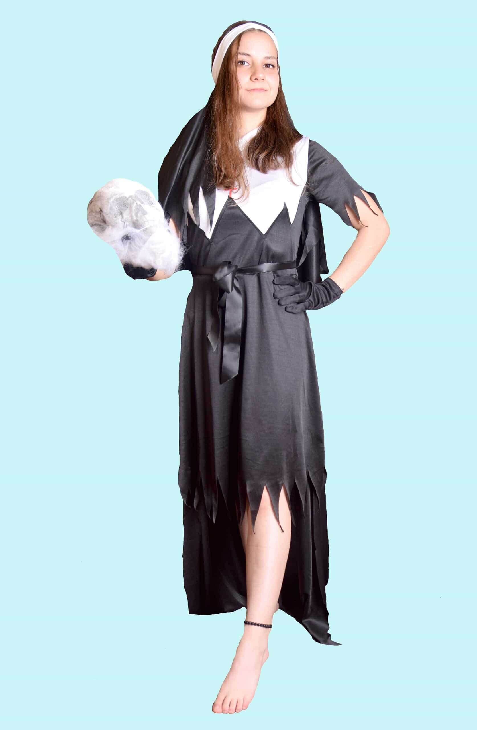 Kostüm Halloween Horror Nonne für Kinder und Jugendliche. 17,- € für vier Tage. Gr. L Zubehör inklusive – Chemnitzer Kostümverleih – H-50a