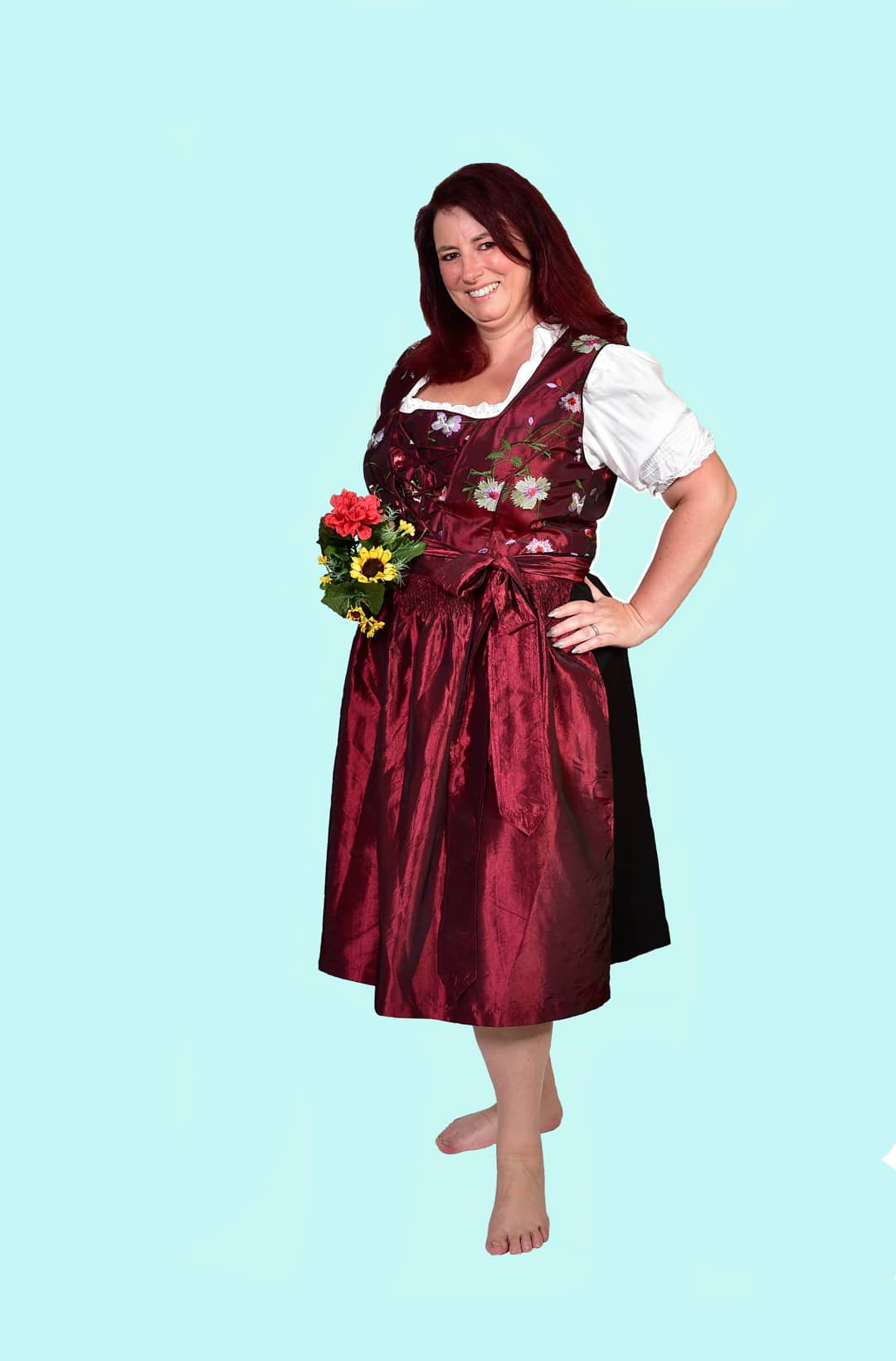 Kostüm rotes Dirndl Gr. 50 für Erwachsene. 43,- € für vier Tage. Zubehör inklusive. Chemnitzer Kostümverleih. W-222
