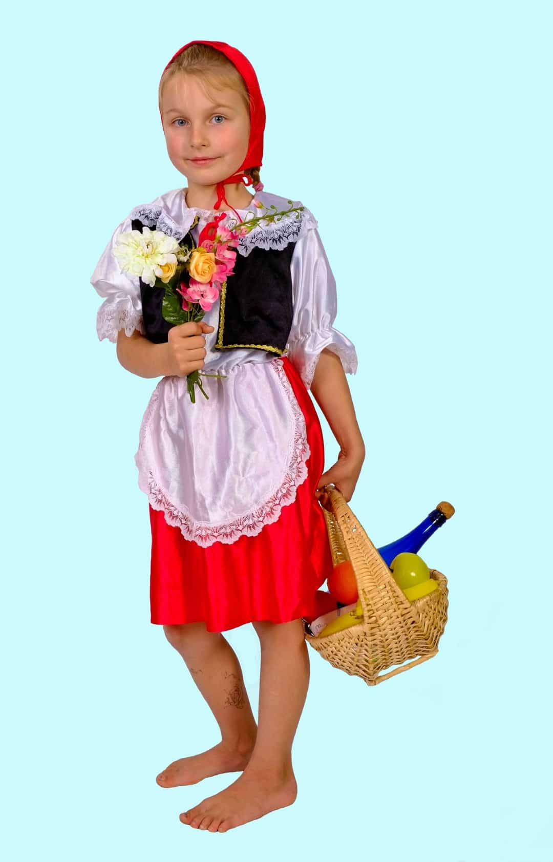 Kostüm Rotkäppchen Blumenkind Gr. 134 für Kinder. 13,- € für vier Tage. Zubehör inklusive – Kostümverleih Chemnitz – Kostüm M-8