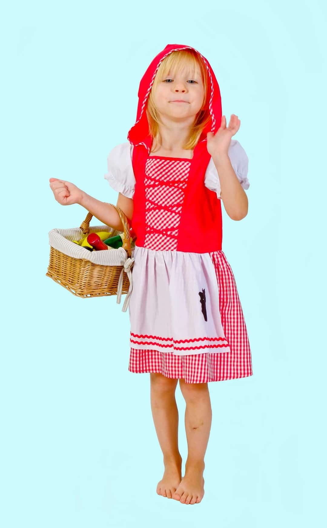 Kostüm Rotkäppchen Gr. 110 für Kinder. 13,- € für vier Tage. Gebr. Grimm. Zubehör inklusive – Kostümverleih Chemnitz – Kostüm M-6