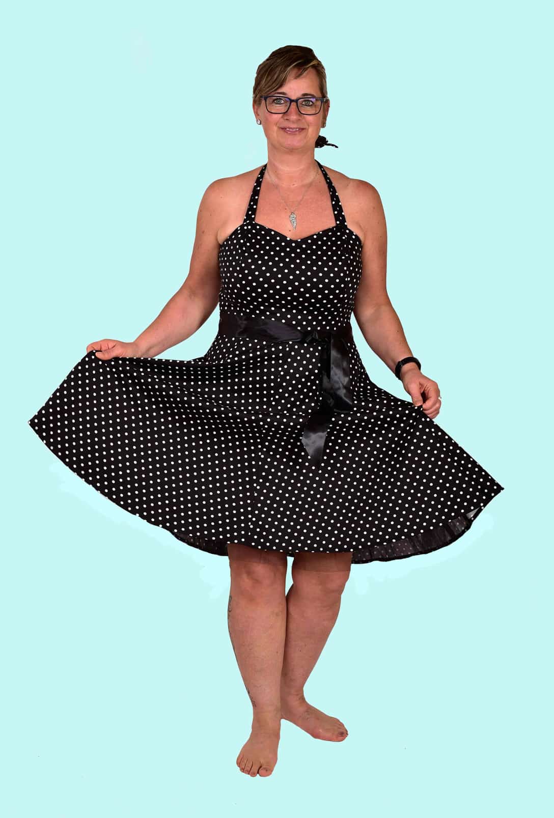 Kostüm weiße Punkte Pettingcoat Rock and Roll Gr. 44 für Erwachsene. 31,- € für vier Tage. Zubehör inkl. – R-05