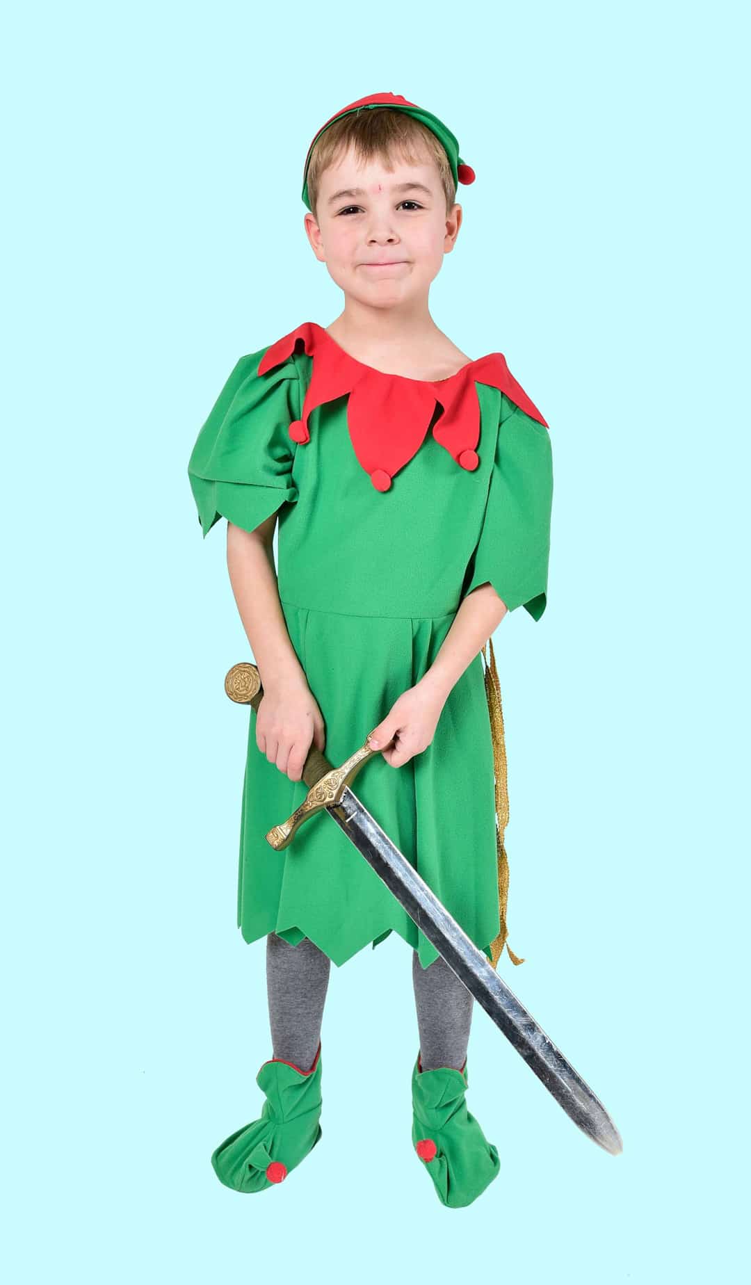 Kostüm Wichtel Peter Pan Gr. 128 für Kinder. 16,- € für vier Tage. Zubehör inklusive. Chemnitzer Kostümverleih. W-85